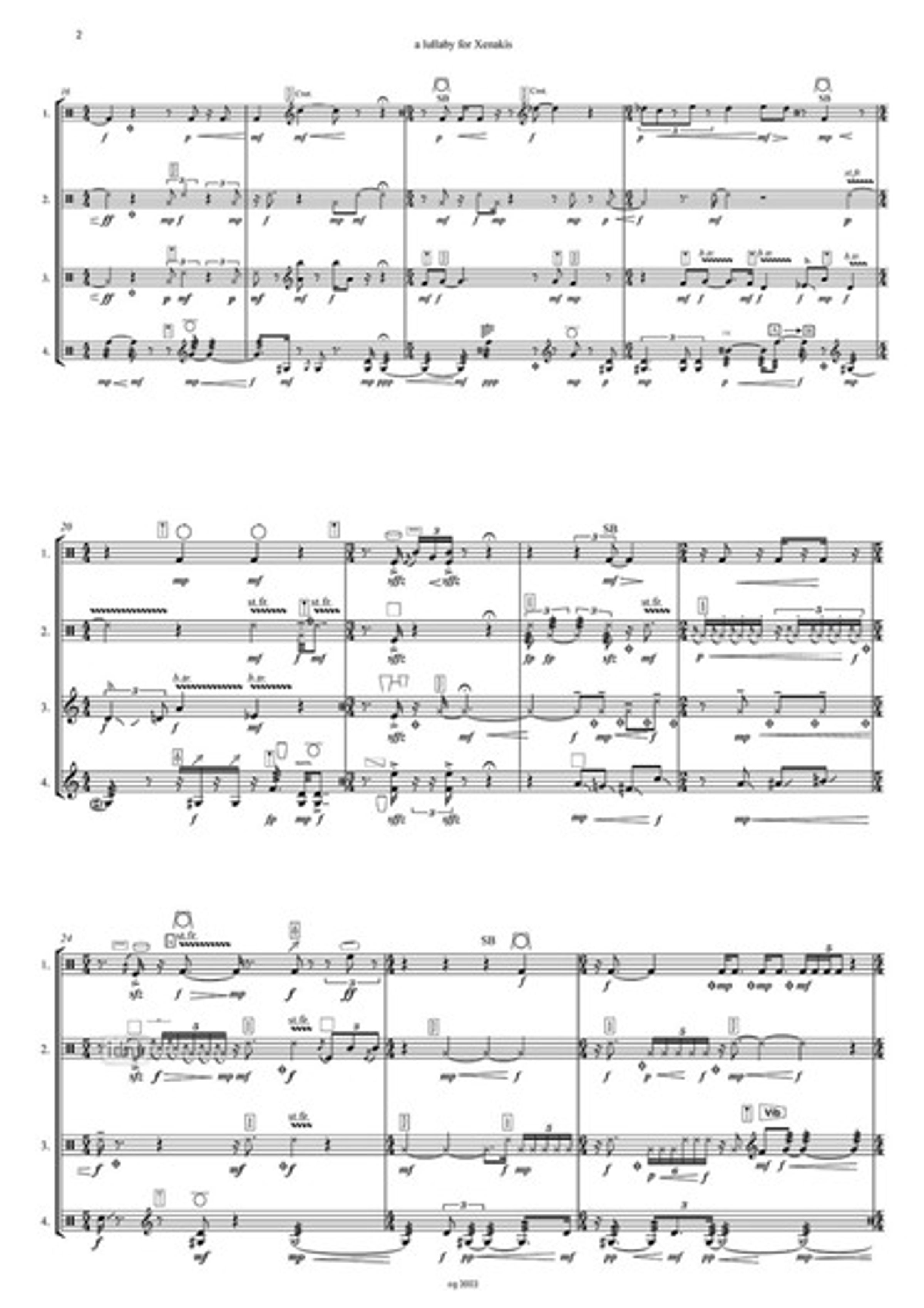 Irini Amargianaki: a lullaby for Xenakis für Schlagzeugquartett (2022), Noten