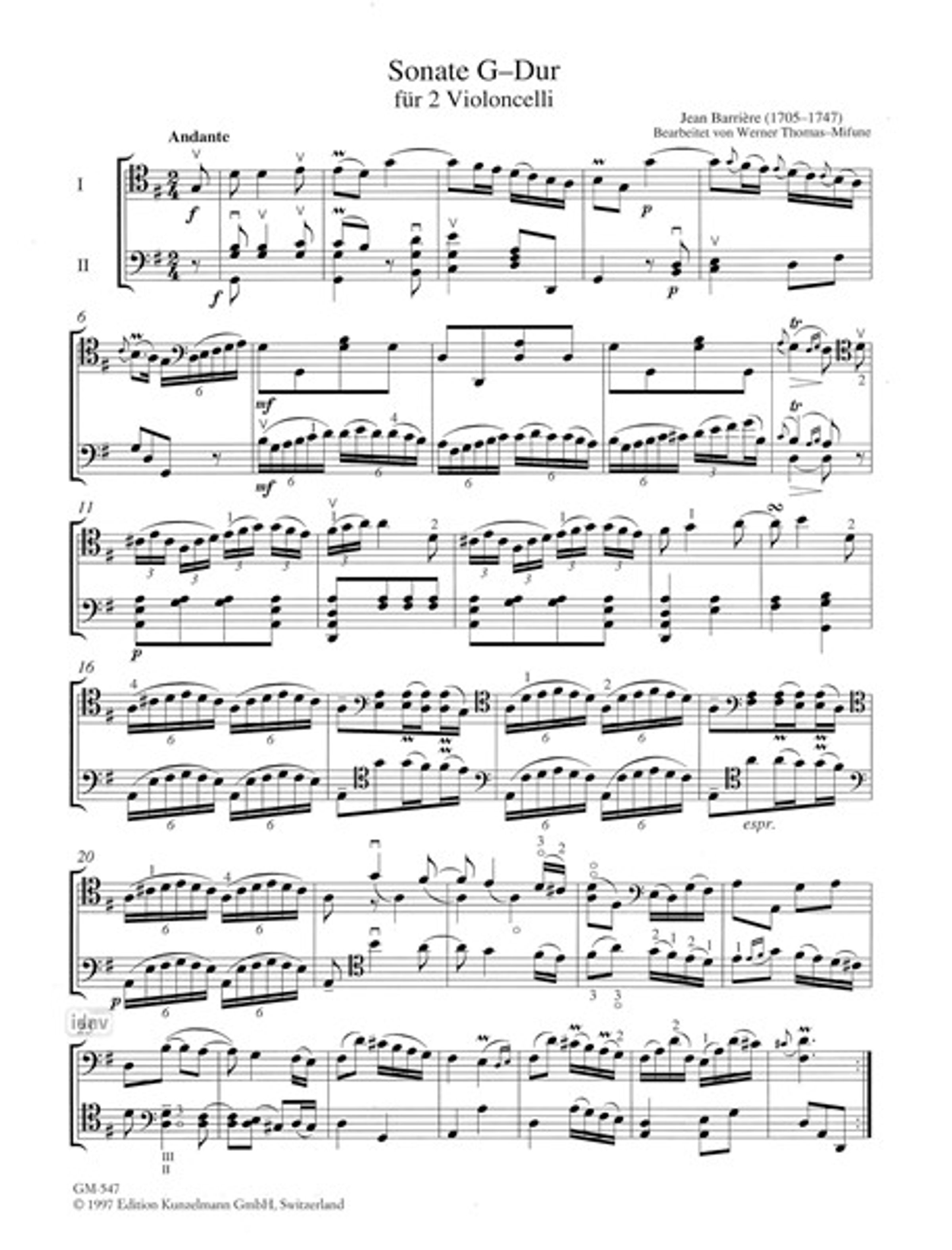 Jean-Baptiste Barriere: Sonate für 2 Violoncelli G-Dur