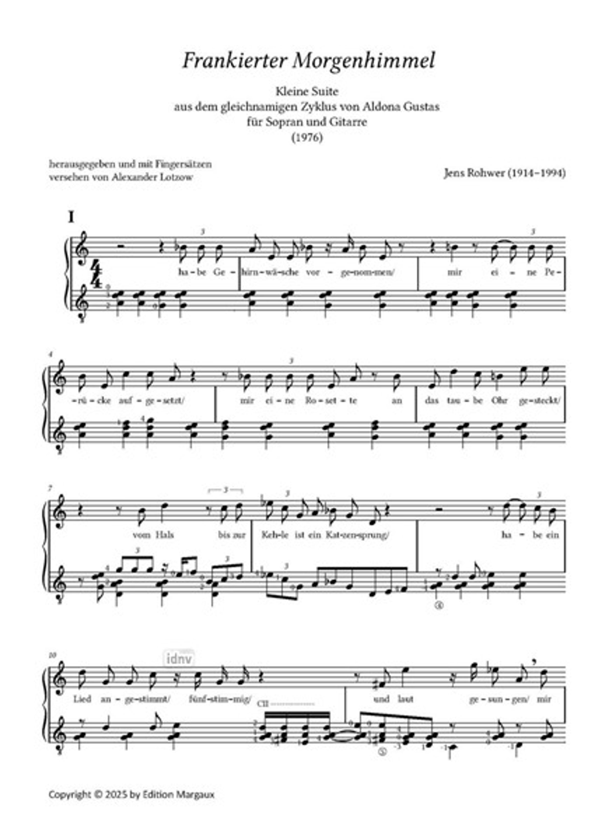 Jens Rohwer: Frankierter Morgenhimmel für Sopran und Gitarre