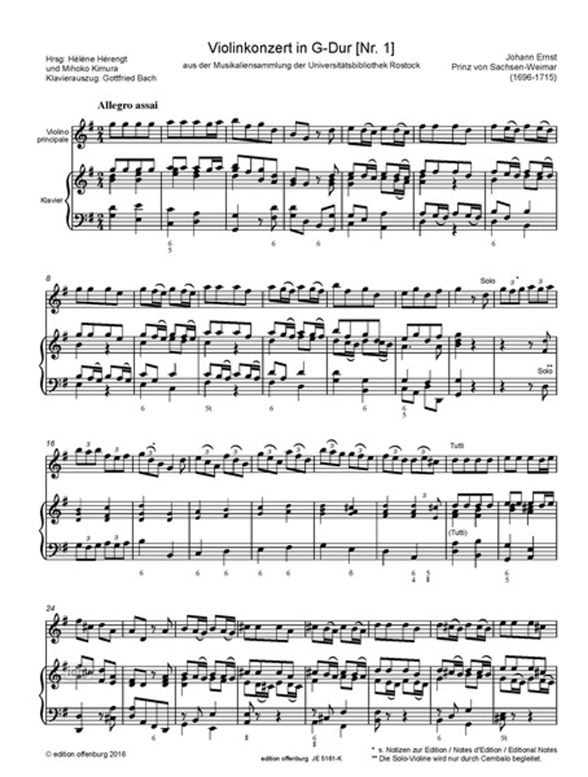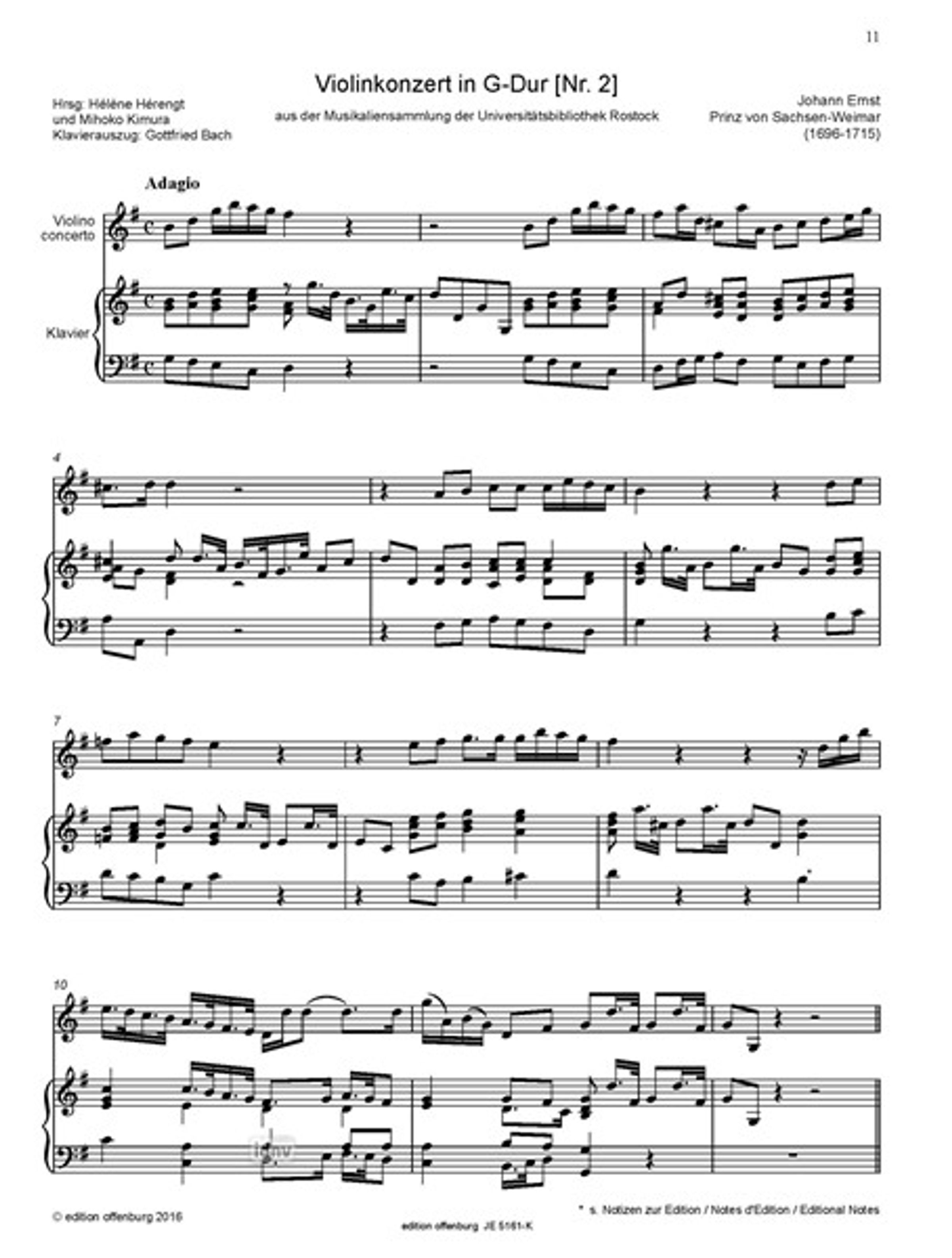 Johann Ernst Prinz von Sachsen-Weimar: Zwei Violinkonzerte, nach dem Rostocker Manuskript für Violine und Klavier