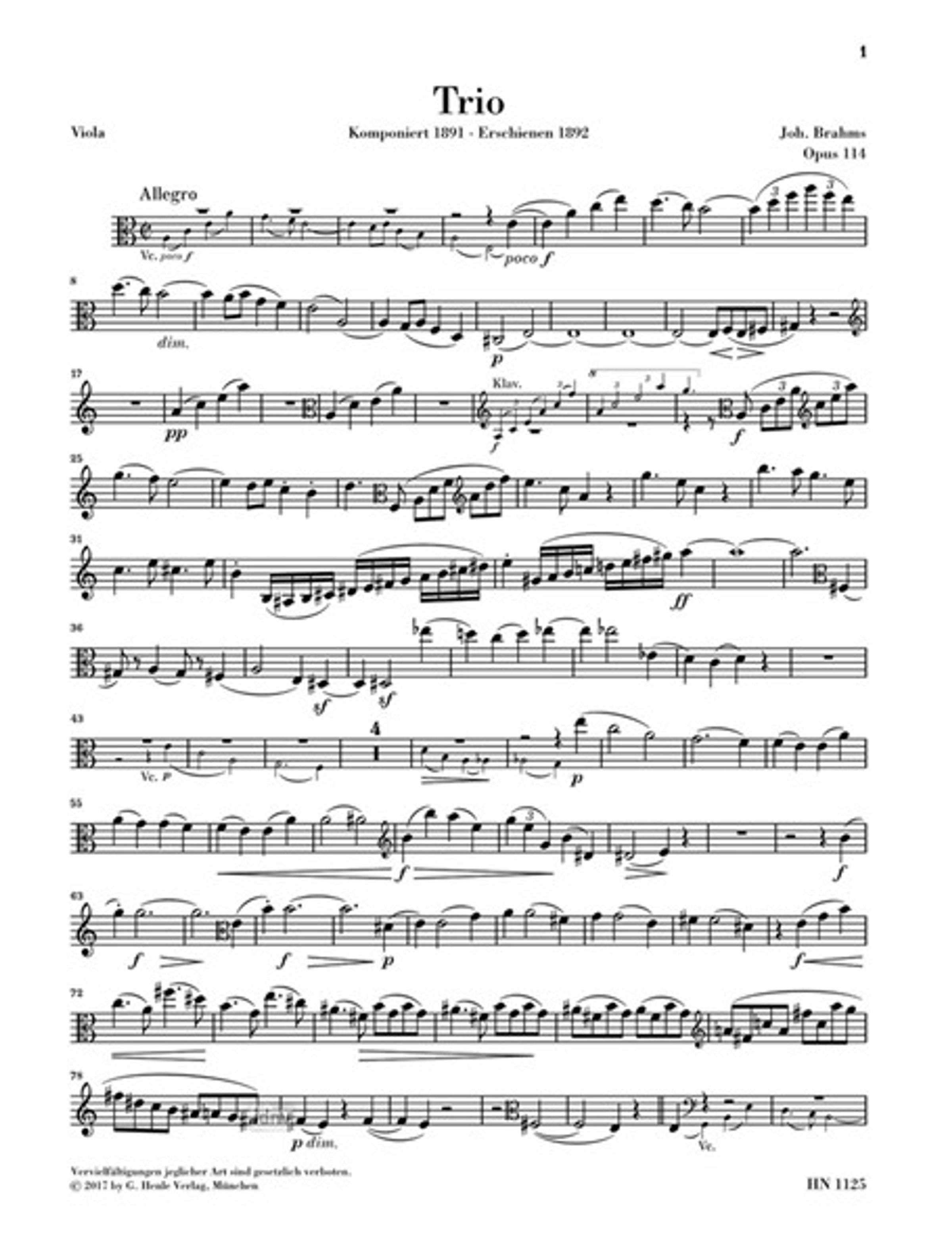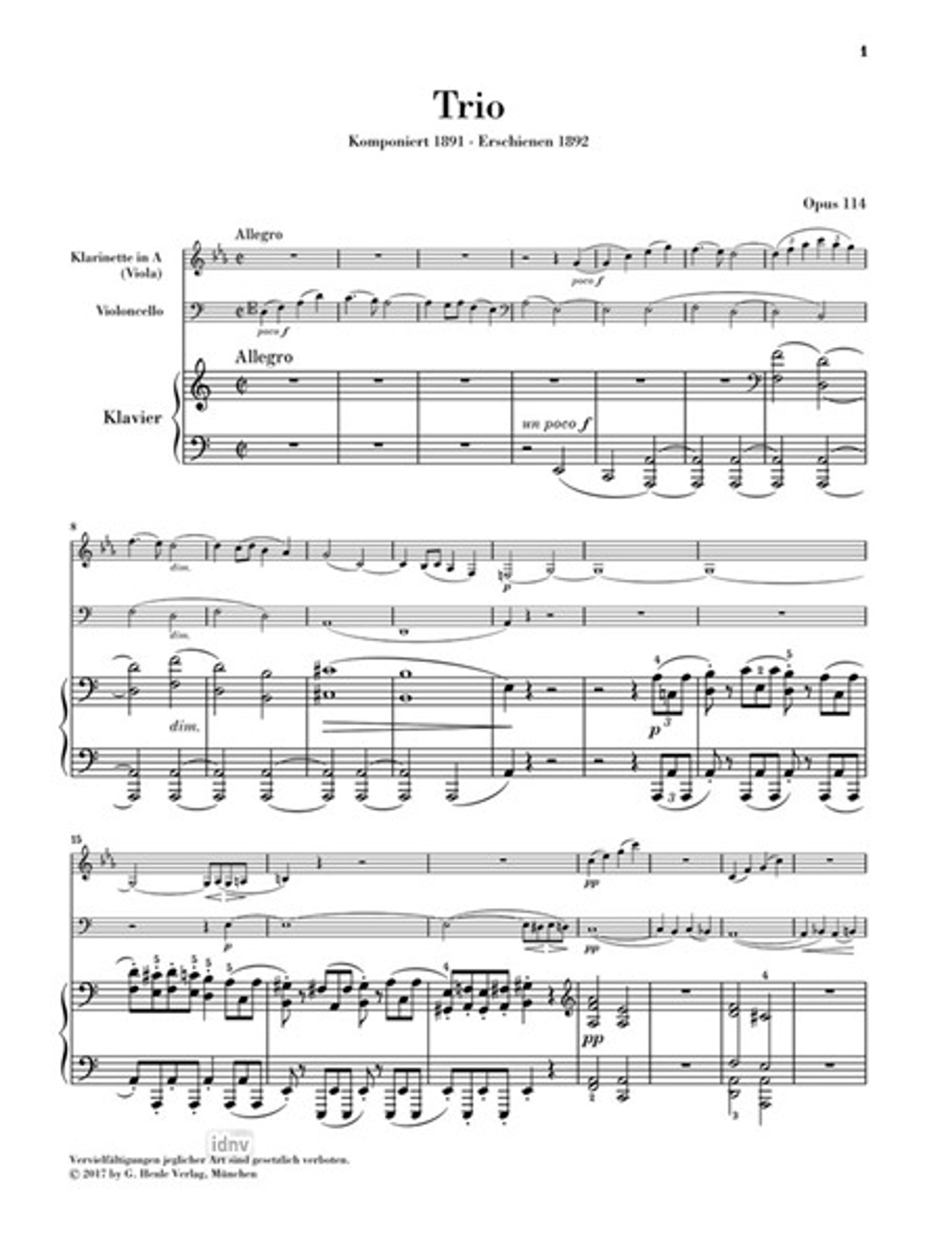 Trio für Klavier, Klarinette (Viola) und Violoncello a-moll op. 114