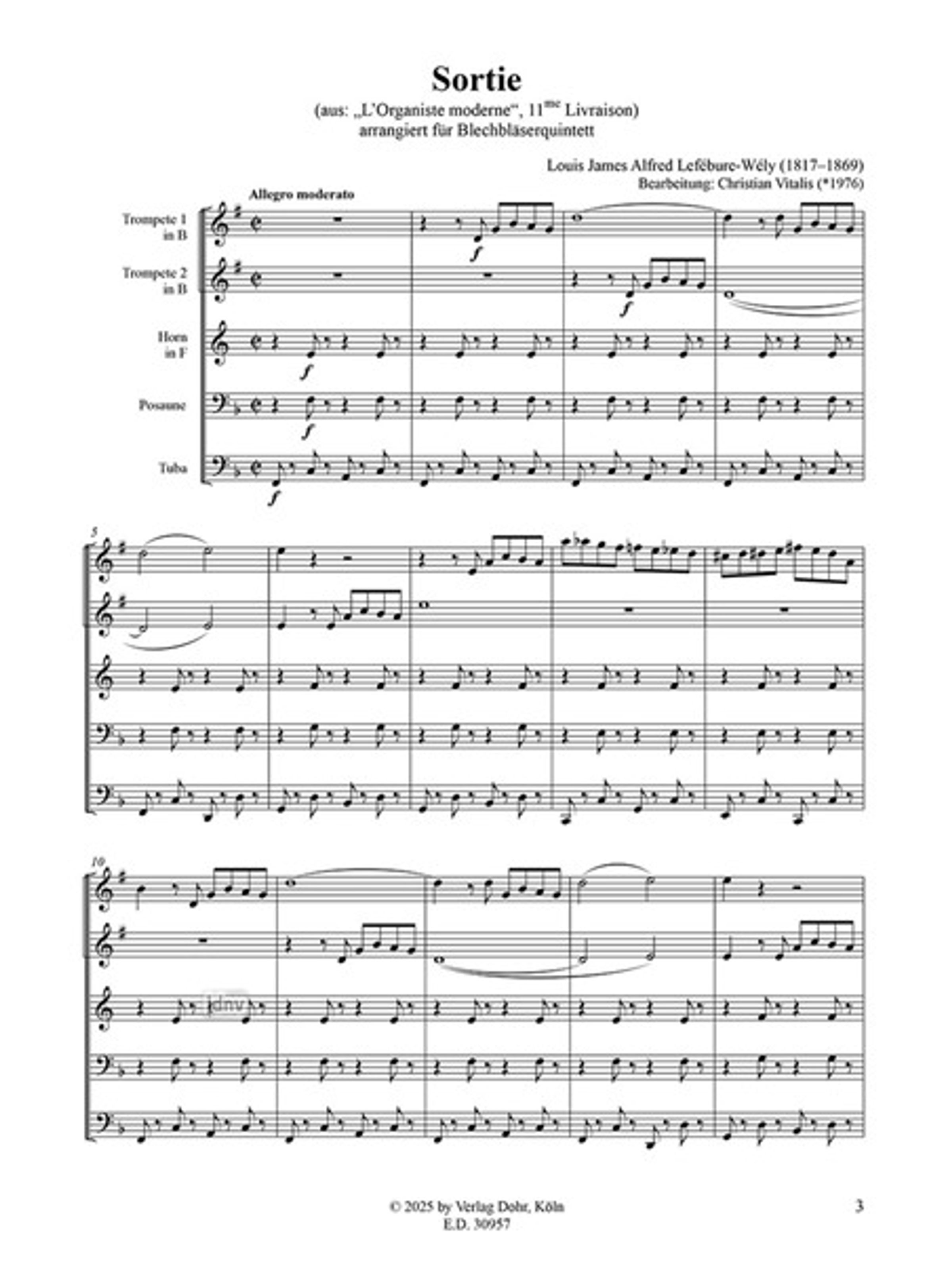 - für Blechbläserquintett; aus "L'Organiste moderne"; orig. Es-Dur
