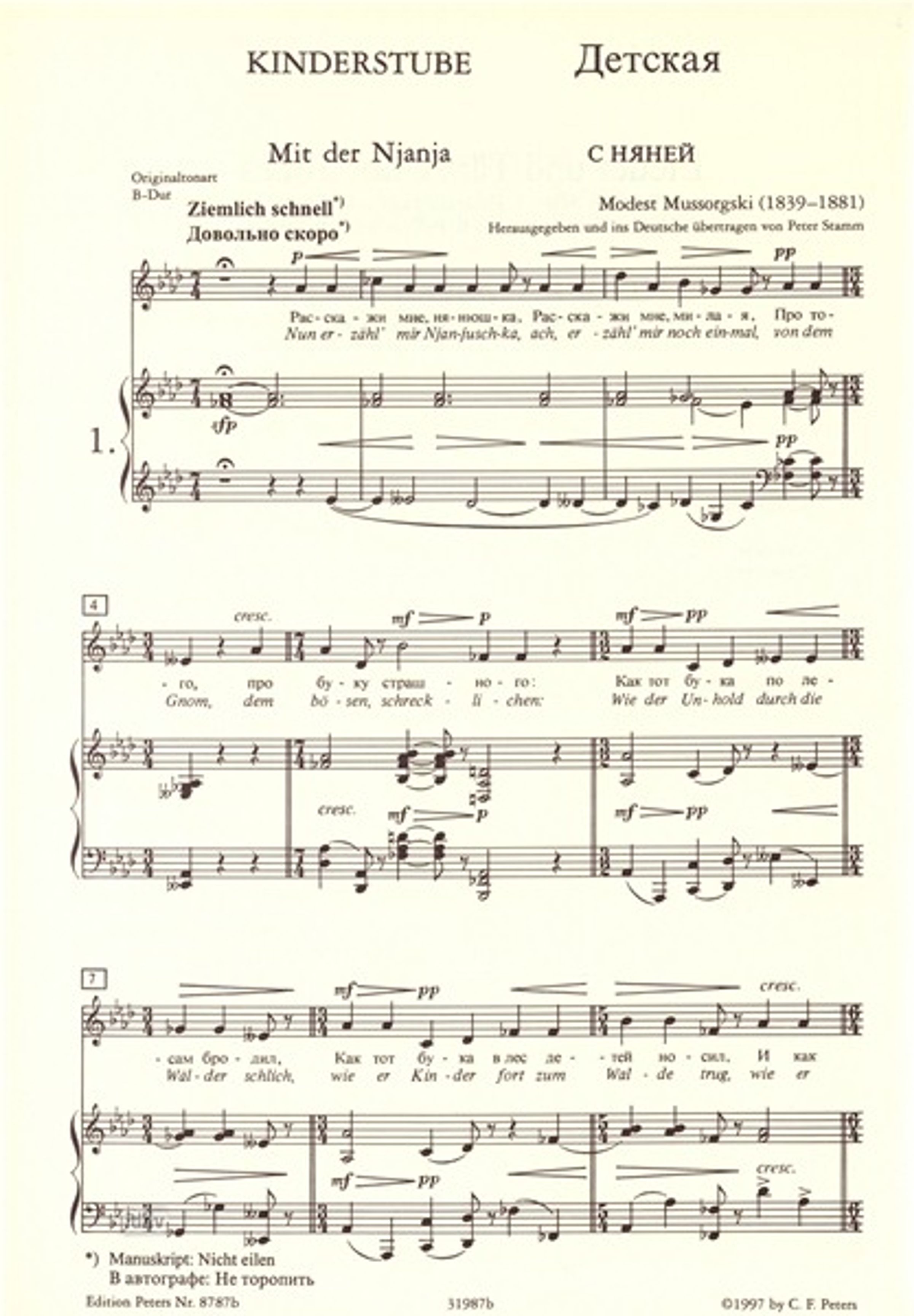 Modest Mussorgsky: Kinderstube - Lieder und Tänze des Todes, Noten, Noten