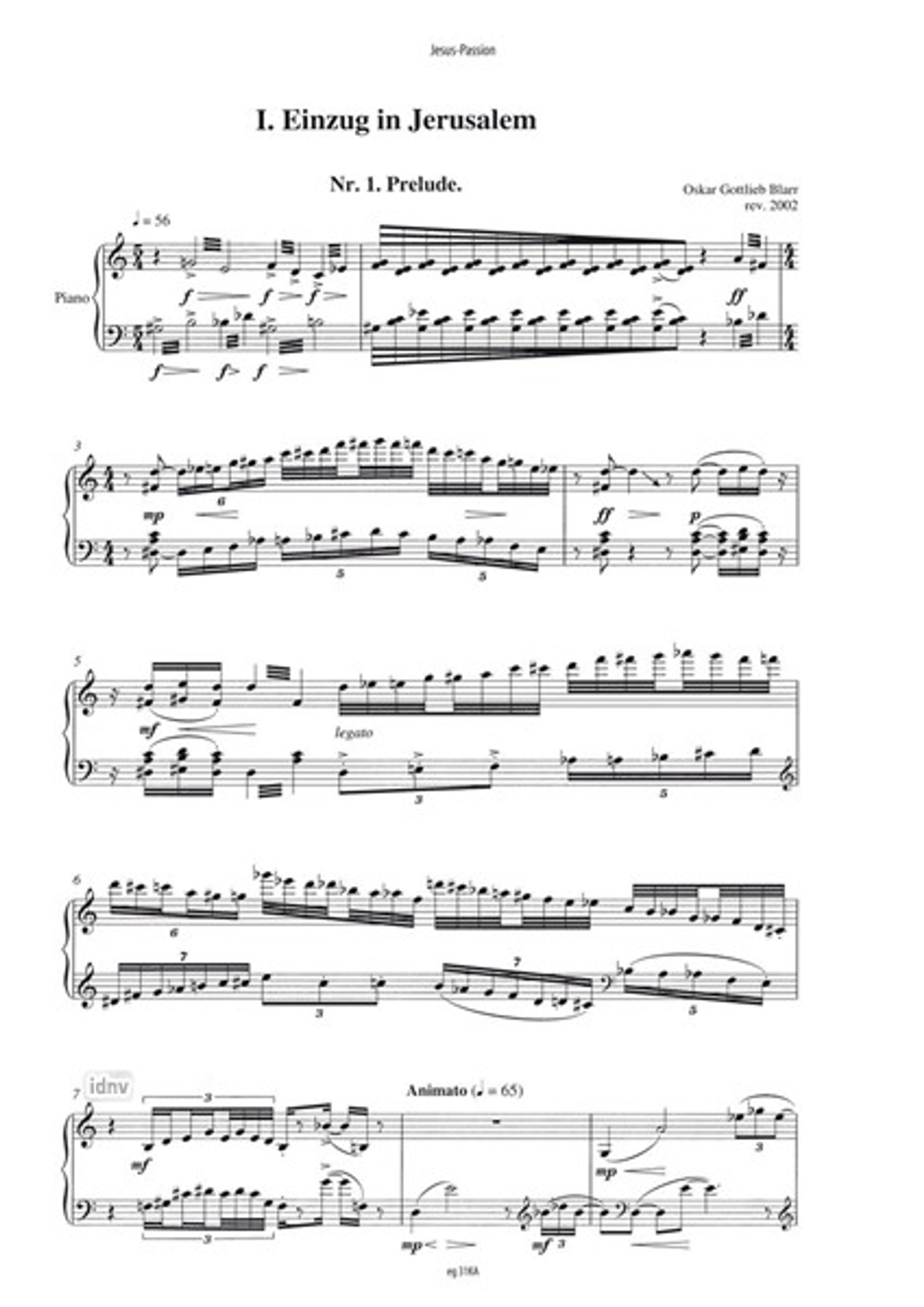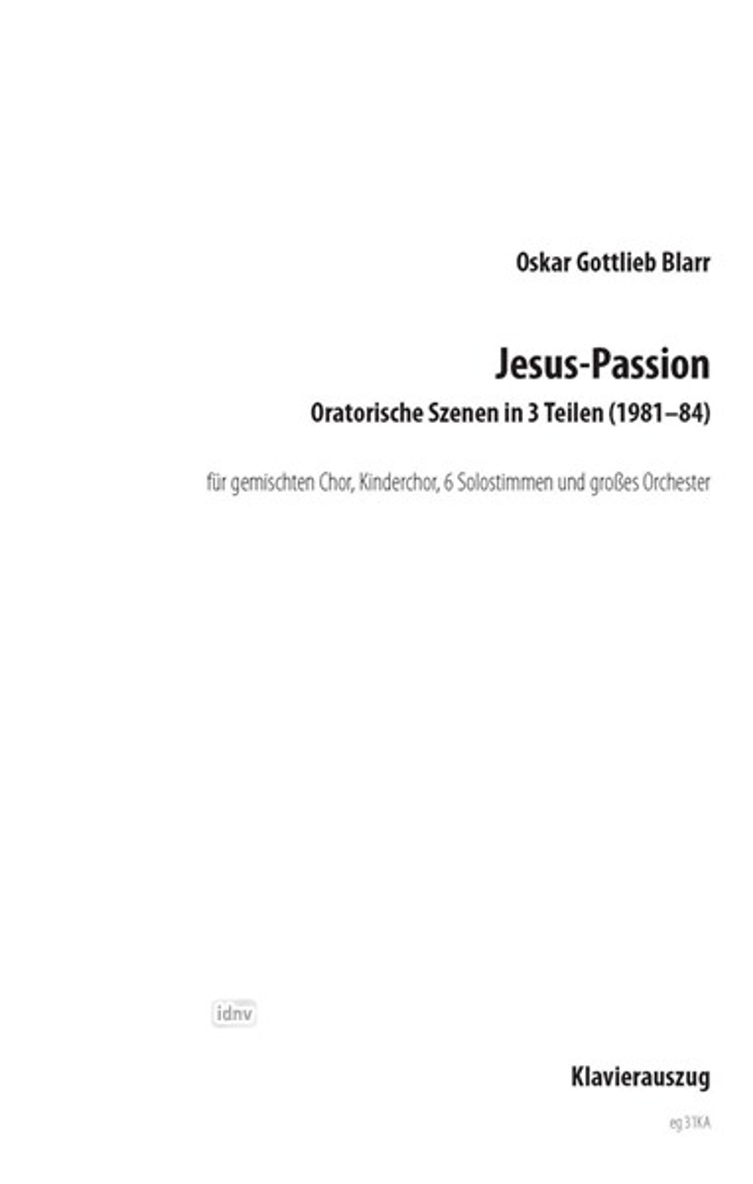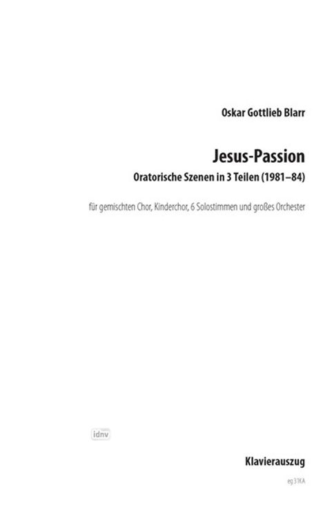 Oskar Gottlieb Blarr: Jesus-Passion für gemischten Chor, Kinderchor, 6 Solostimmen und großes Orchester (1983-85)