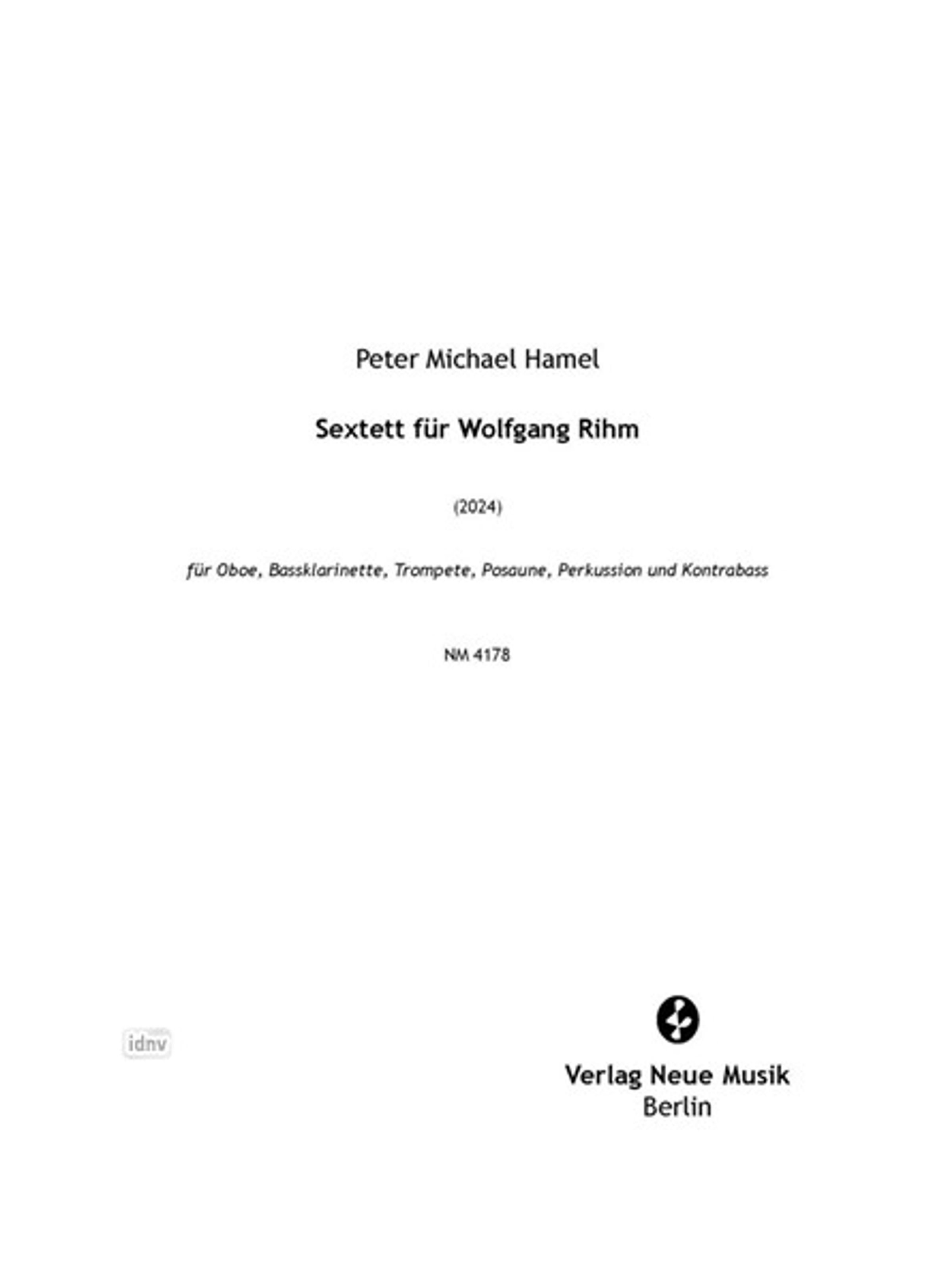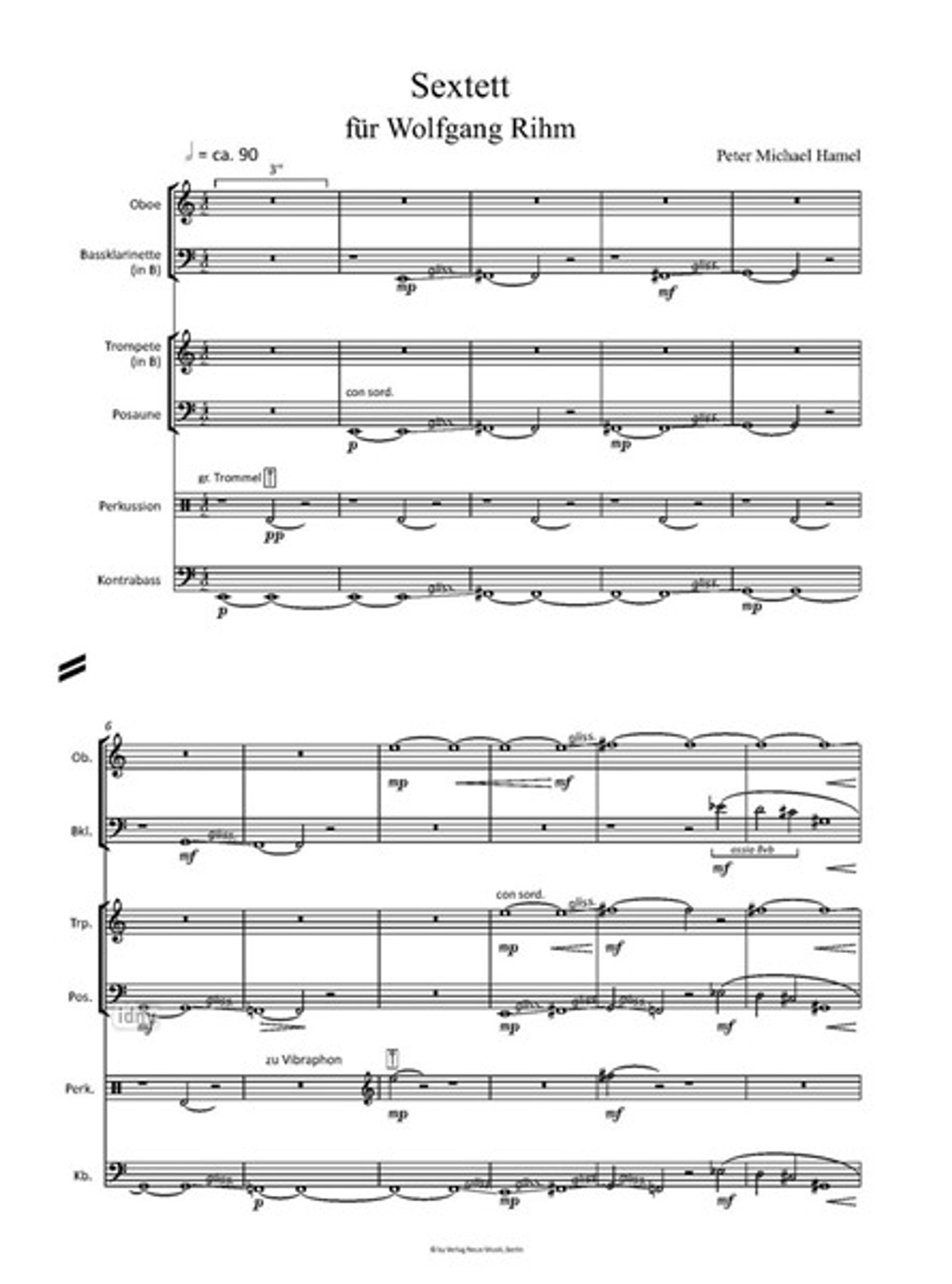 Peter Michael Hamel: Sextett für Wolfgang Rihm für Oboe, Bassklarinette, Trompete, Posaune, Perkussion und...