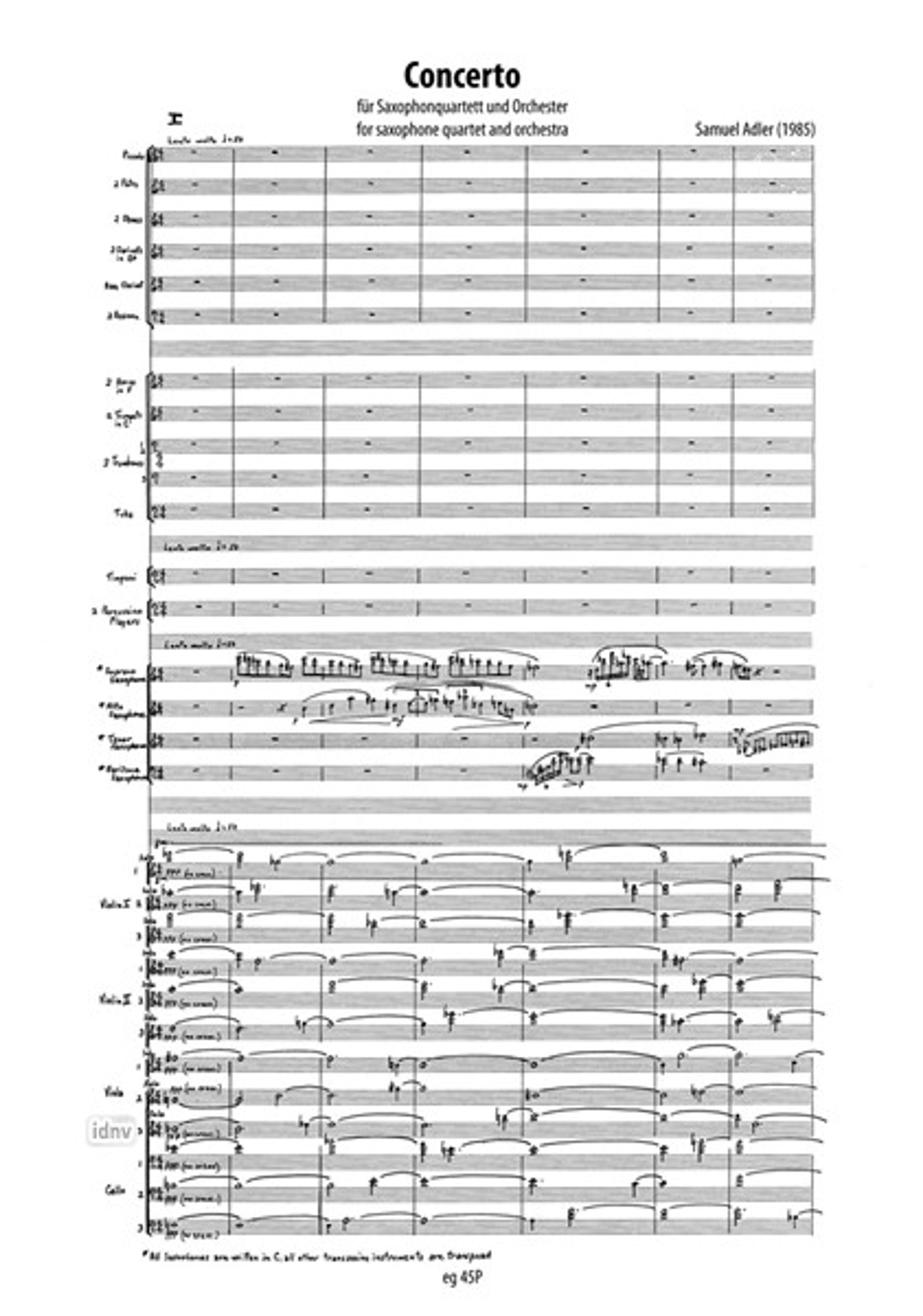 Samuel Adler: Concerto für Saxophon-Quartett und Sinfonie-Orchester (1985)