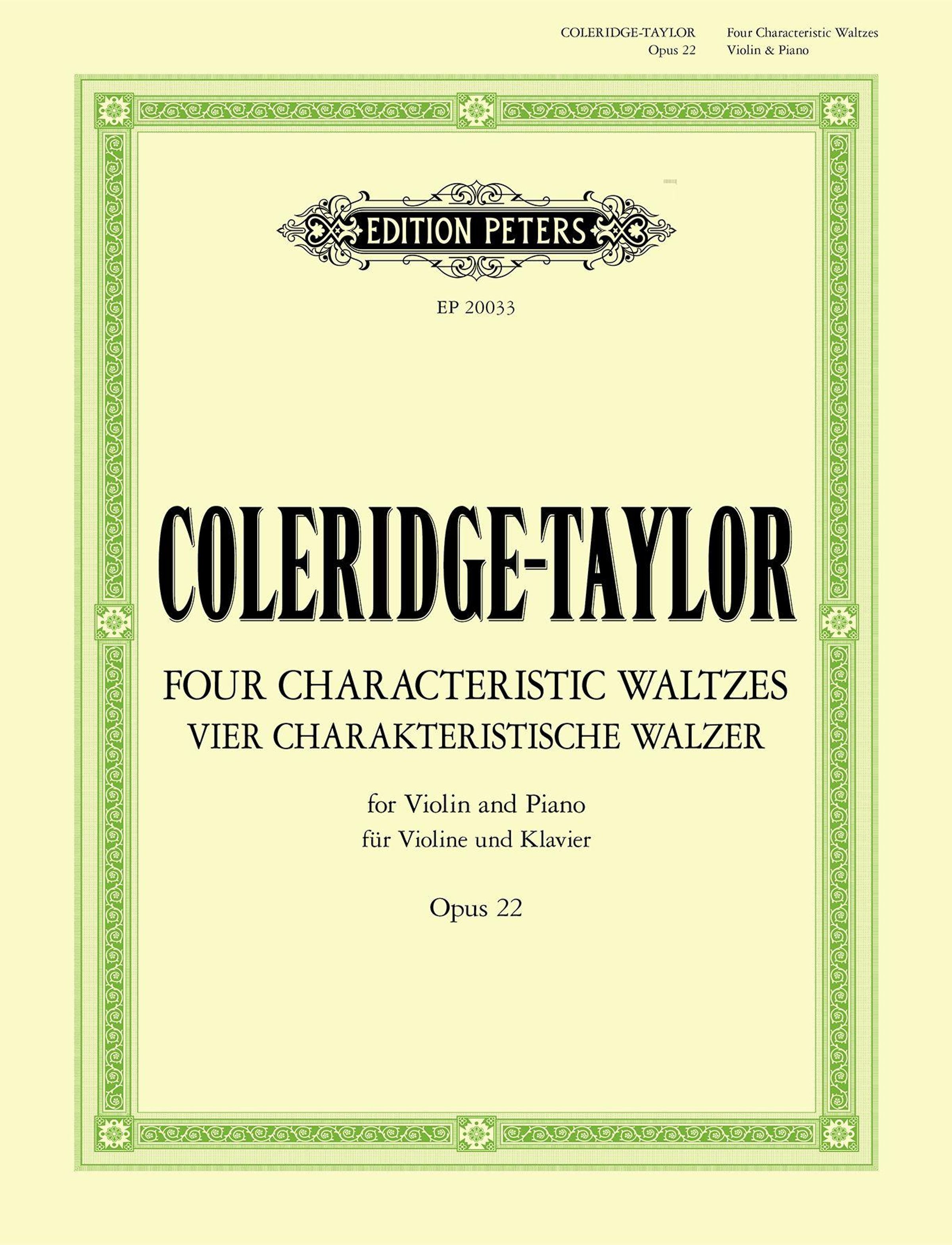 As the illegitimate son of an English woman and a man from Sierra Leone, Samuel Coleridge-Taylor overcame the constraints of Victorian society to become an acclaimed composer and a symbol of hope for racial equality, earning international fame during his lifetime. His Four Characteristic Waltzes Op. 22 , originally written for orchestra and arranged here by the composer for violin and piano, are ideal concert pieces that explore the expressive range of the waltz form: from the Dvöák-inspired Valse bohémienne , through the tender simplicity of the Valse rustique , to the serene Valse de la Reine and the fiery brilliance of the Valse mauresque. Lyrical and idiomatic for violin, with a rich, full piano part, these pieces offer rewarding repertoire for intermediate to advanced players and a delightful rediscovery of Coleridge-Taylor's elegant, expressive style. With an introduction by violinist Maya Magub.
