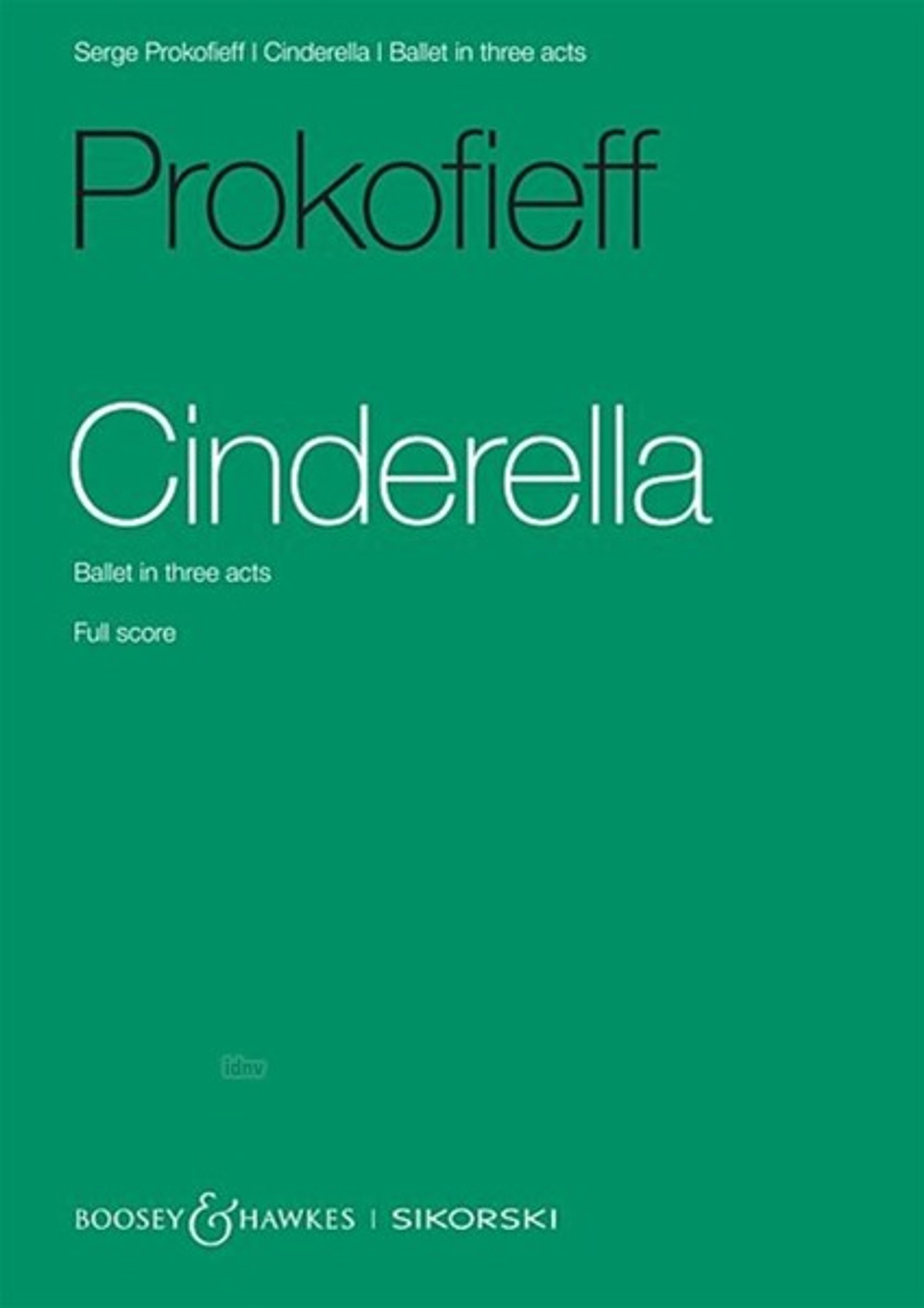 Text: Serge Prokofieff, Cinderella, Ballet in three acts, Full score. Grüner Hintergrund., Noten