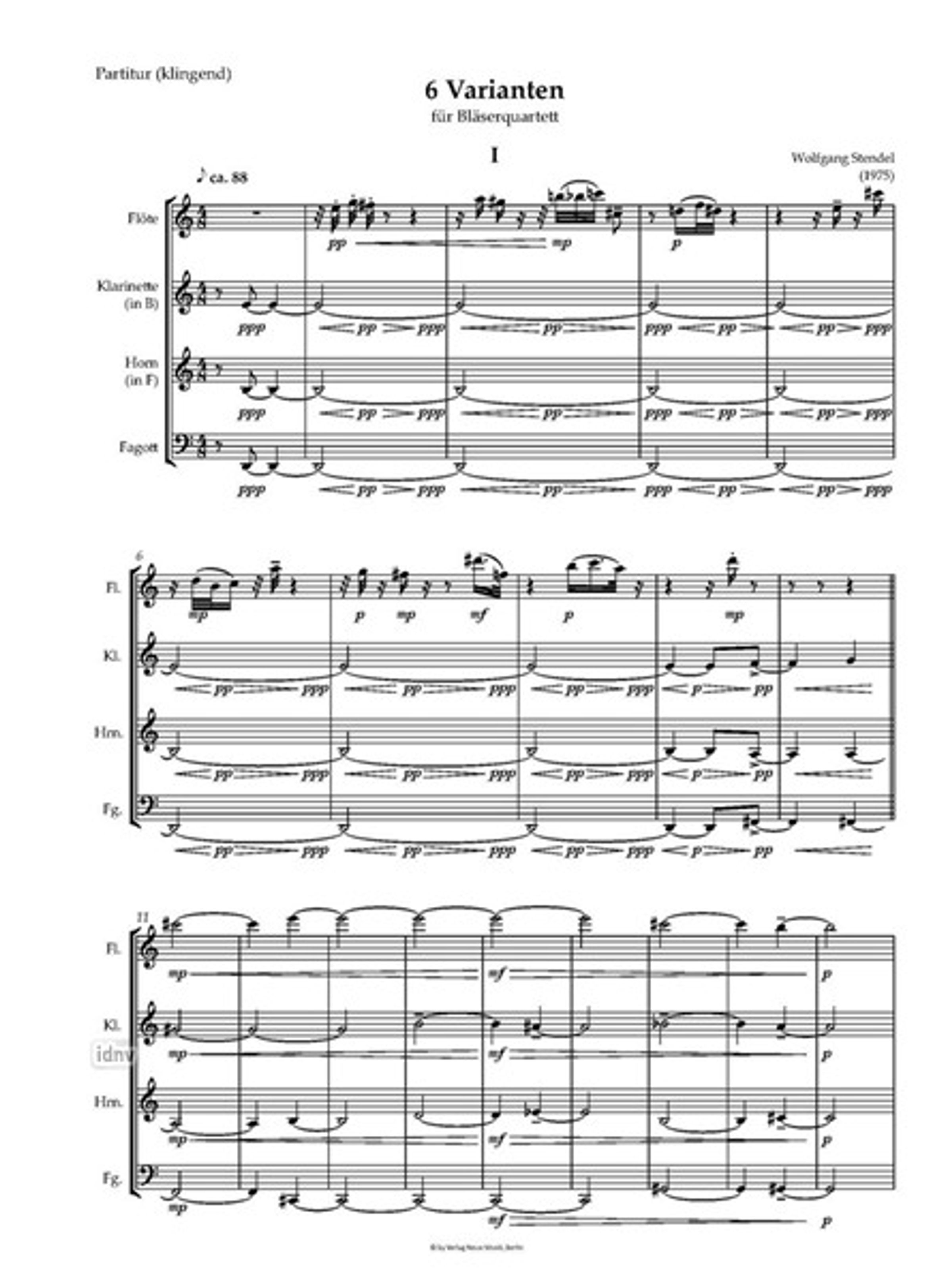 Wolfgang Stendel: 6 Varianten für Bläserquartett (1975)