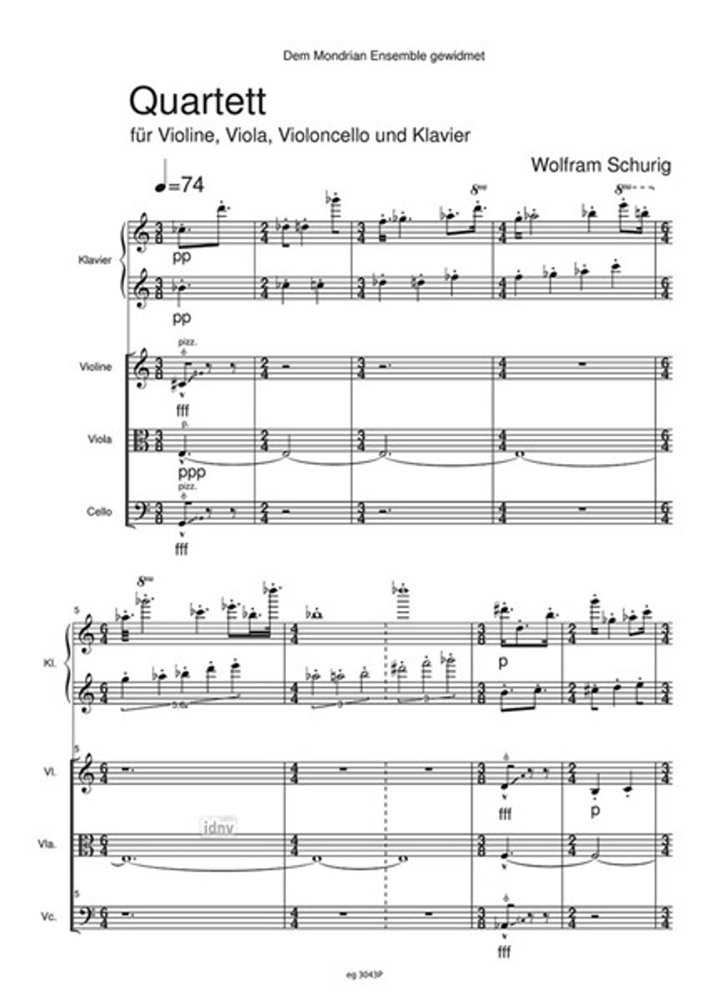 Wolfram Schurig: Quartett für Violine, Viola, Violoncello und Klavier (2022/23)